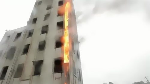 在起火只是兩分鐘后,電纜就燒到了上面一層,而火勢(shì)好像也一起在向下延伸。